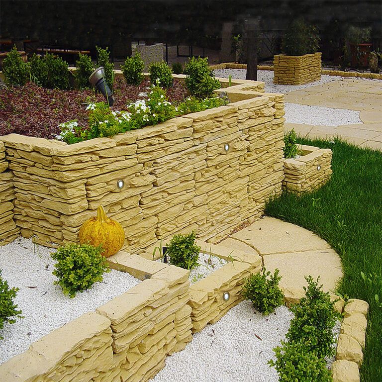Pietra ricostruita, ideale per creare muretti, bordure, pavimentazioni e camminamenti.